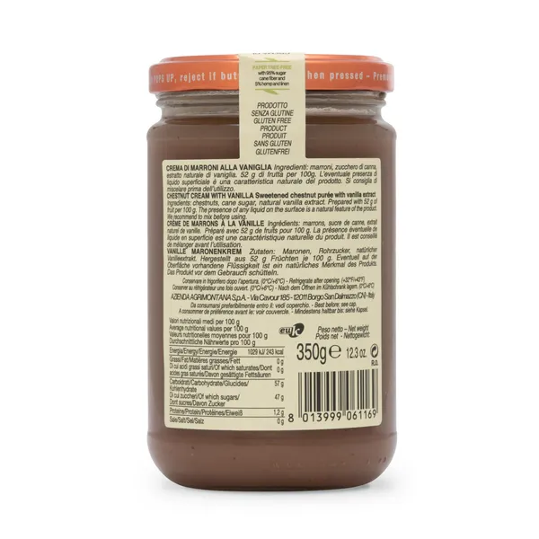 Ingredienti: Marroni, zucchero di canna, vaniglia Bourbon.