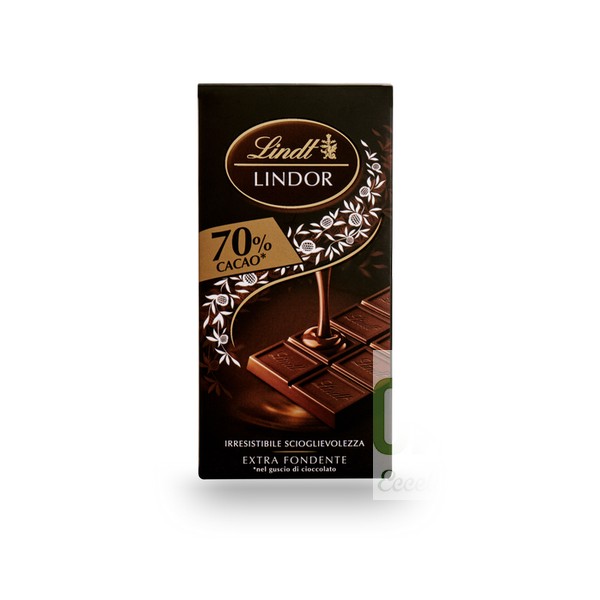 Cioccolato extra fondente Cacao:70% minimo.Ingredienti: pasta di cacao, zucchero, burro di cacao, vaniglia. Può contenere frutta a guscio, latte, soia e semi di sesamo.